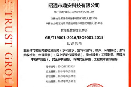 2003年11月10日,昭通市鼎安科技有限公司成立,初始主要從事第三方安全工程技術(shù)服務,經(jīng)多年運營,發(fā)展為多專業(yè)綜合科技平臺,為社會提供多種專業(yè)技術(shù)服務工作。 現(xiàn)公司注冊資金為1200萬元,公司法定代表人:毛衛(wèi)旭。公司主要業(yè)務:安全評價、安全標準化評審、安全工程技術(shù)服務;環(huán)境監(jiān)測、職業(yè)衛(wèi)生檢測、檢驗;法律訴訟及非訴訟服務;司法鑒定、固定資產(chǎn)投資項目節(jié)能服務;工程咨詢;工程測量測繪;安全教育培訓等。是安全生產(chǎn)服務、安全教育培訓機構(gòu),也是環(huán)境監(jiān)測和職業(yè)衛(wèi)生服務機構(gòu),同時也是綜合的檢測檢驗、綜合科技平臺服務機構(gòu)。多年來為公、檢、法、司、軍、警、海關(guān)、仲裁、安監(jiān)、工礦商貿(mào)企業(yè)、社會團體及個人提供多專業(yè)技術(shù)服務。